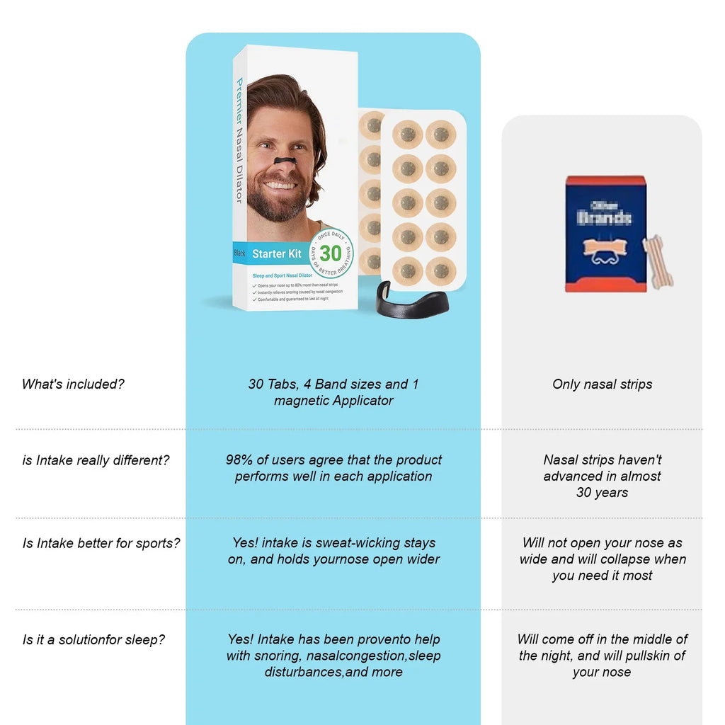 Boost your breathing and quality of life with the 30-Day Nasal Breathing Dilators Starter Kit. Featuring innovative magnetic nose strips, this kit is designed to increase air intake during sports, improve sleep quality, and reduce snoring. Perfect for active individuals and those seeking restful nights, these dilators ensure comfort and effectiveness with every use.